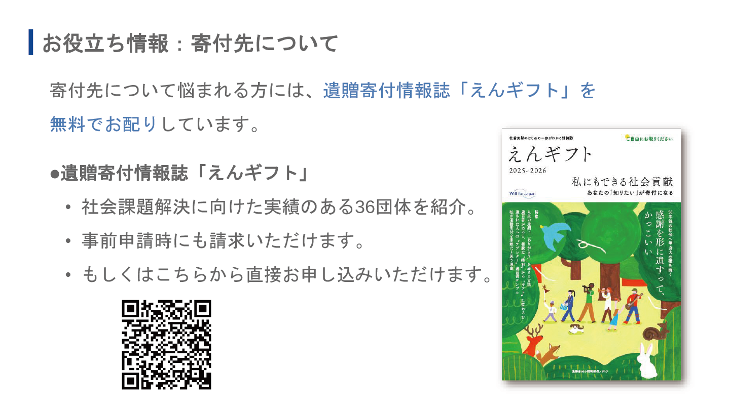 遺贈寄付の情報発信メディア「えんギフト」を無料配布中です。