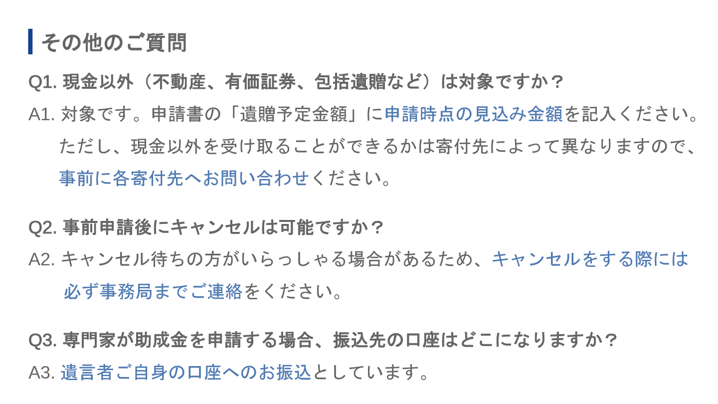 本年度より、遺贈金額に合わせて助成額の算出をいたしますのでご注意ください。