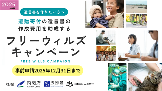 遺贈寄付の遺言書作成費用を助成する「フリーウィルズキャンペーン」について、事前申請の締切が「12月末」に迫ってまいりましたのでご案内です。